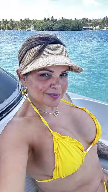 She is around 46 years old, but from what I see in her photo’s, she looks younger than that.