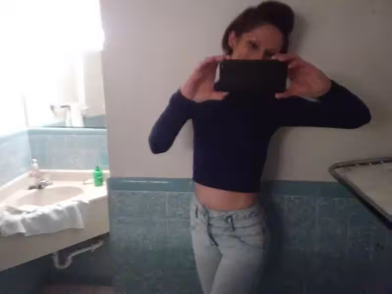 She looks to be around 4’9" feet tall. She has a Slender body type. Her ethnicity is White.